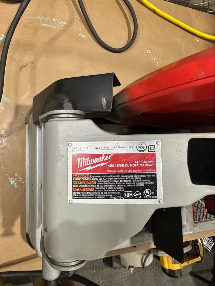 Pretty much brand new, excellent condition 14” abrasive chop saw from Milwaukee. Model is 6177-20. See video to hear and see it working. See photos for more specs and details. This is selling new at Home Depot for $299 plus tax and KMS for $249.99.