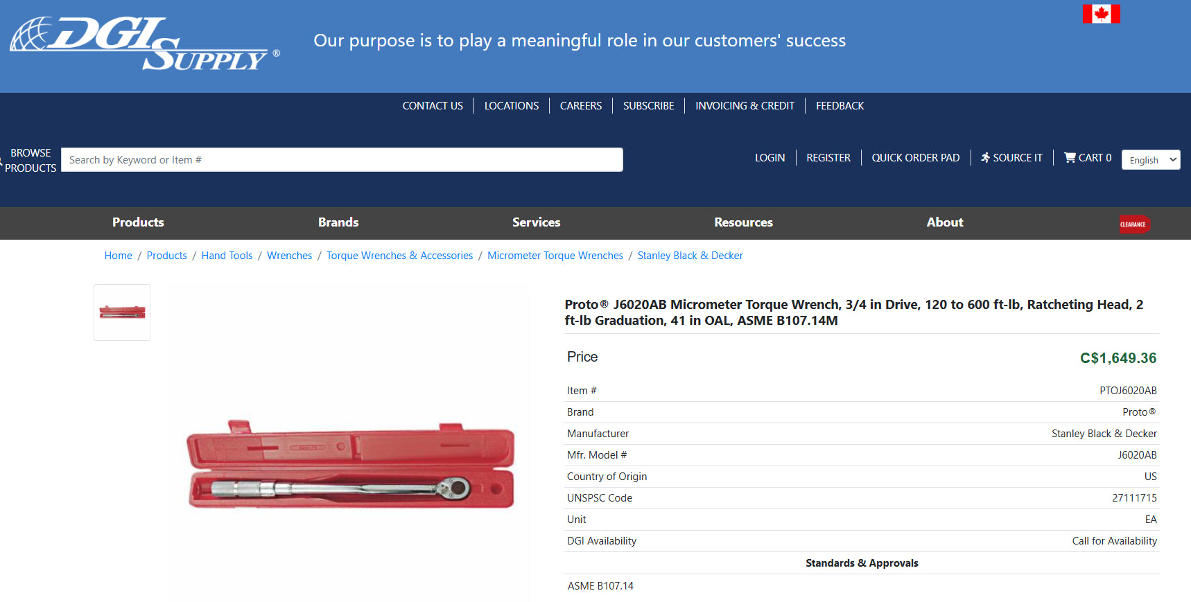 Proto 6020 Standard Ratcheting Head Micrometer Torque Wrench (3/4” Drive, with Case)